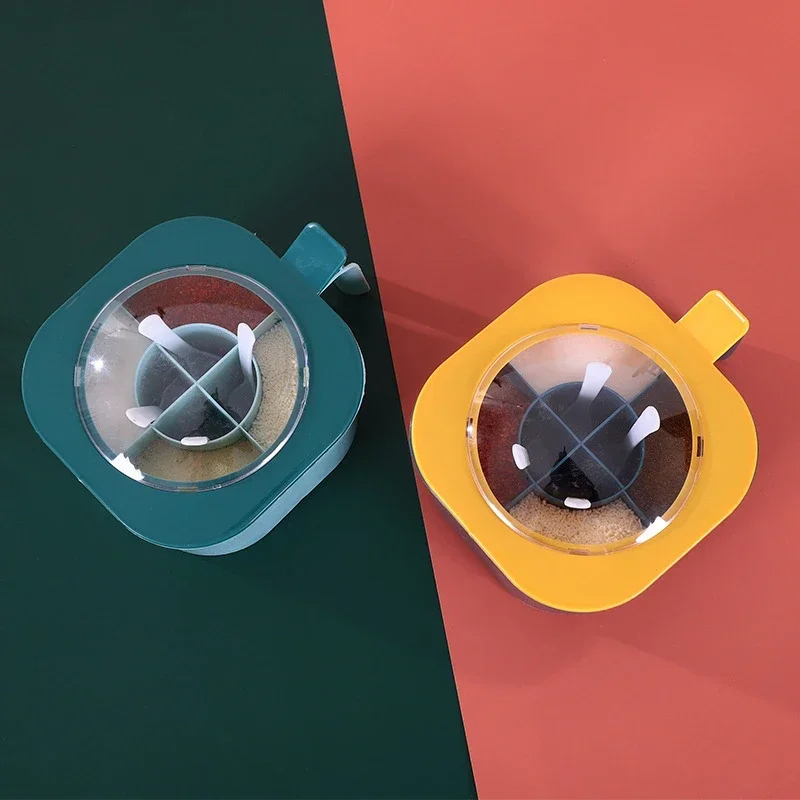 1 Set Large Capacity Seal Seasoning Box with Spoon 4 in 1 Multi Grids Spice Jar Kitchen Gadget